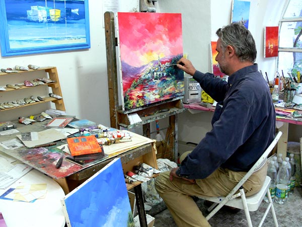 PETER VAN WEL (23-08-1946, OLANDA) DAL 1968 VIVE E LAVORA, SIA UNA PARTE DELL' ANNO IN OLANDA, SIA A BUSSANA VECCHIA IN ITALIA. PROPRIO PER L'AZIONE RECIPROCA DI DUE CULTURE, IL SUO LAVORO È SPESSO SOGGETTO A CAMBIAMENTI ARTISTICI. ANCHE IL BISOGNO DELL' ARTISTA DI SVILUPPARSI E RINNOVARSI HA PORTATO SPESSO IL SUO LAVORO AD UN ALTRA VELOCITÀ, CHE RISULTA MOLTE VOLTE IN FORME ARTISTICHE SORPRENDENTI. FAMOSE SONO LE SUE 'TRADUZIONI' DI MUSICA IN PITTURA, COME L'OPERA COMPLETA AKHNATHEN DI PHILIP GLASS, SUCCESSIVAMENTE ELABORATA IN QUADRI DIGITALI. IL SUO LAVORO ATTUALE É SOPRATTUTTO LEGATO Al COLORI ACCALORATI DEL MEDITERRANEO, INFATTI I TEMI SONO SPESSO IN RELAZIONE CON ELEMENTI COME ACQUA, IL MARE E LA COSTA LIGURE. ANCHE NEI SUOI ASTRATTI TORNANO QUESTI COLORI ED I TITOLI SONO IL PIÙ DELLE VOLTE ALLEGORICI, RIFERITI ALLA VITA ED ALLA NATURA.